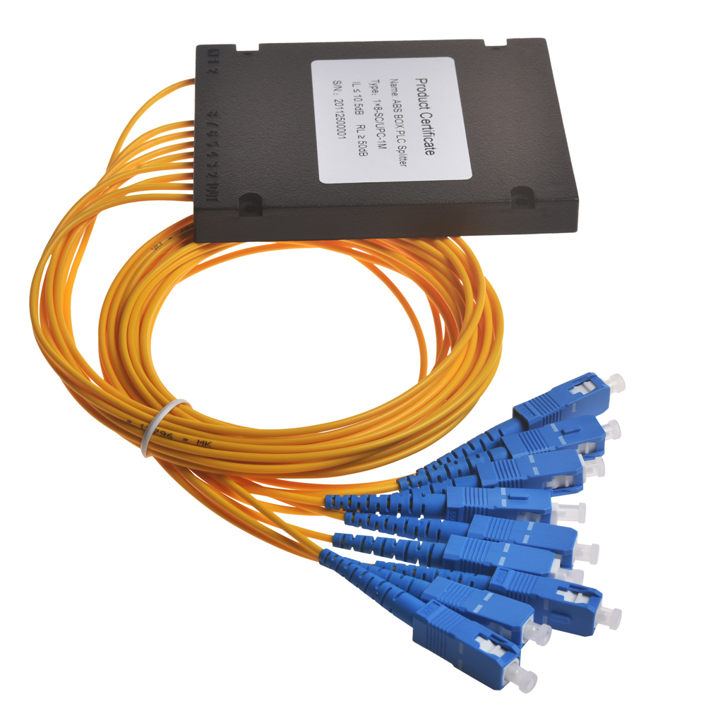 Acasă / Produs / Splitter PLC cu fibră optică / Splitter PLC cu fibră optică cutie ABS / Splitter PLC cu fibră optică GSG-1x8-SC UPC
